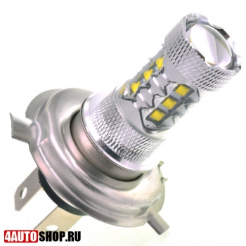 Автомобильная лампа с 16-ю мощными светодиодами CREE. Светодиодная атвомобильная лампа с цоколем H4 предназначена для замены обычной галогенной лампы. Светодиодные лампы отличаются низким потреблением энергии при высокой яркости свечения. Прослужит такая лампа в несколько раз дольше обычной. Общий световой поток лампы H4 16 LED CREE составляет 2880lm, мощность - 80 Ватт.